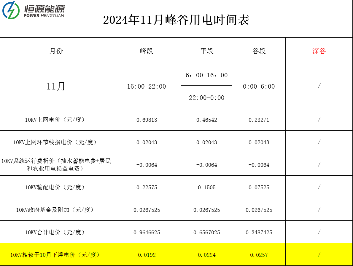 較于10月份各段電價(jià)價(jià)格有下降,其中平段下降了0.0224元/度。